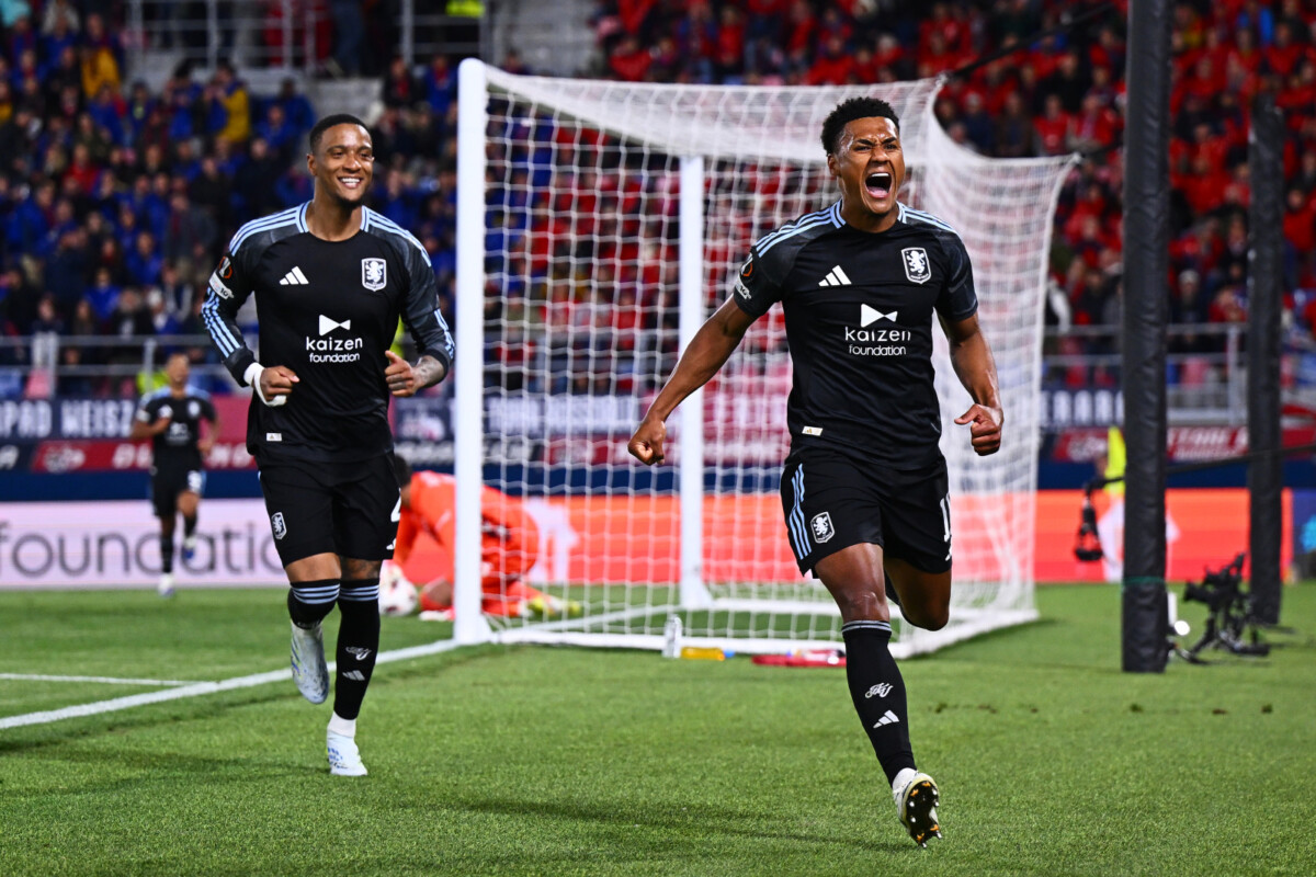 BOLOGNA, ITALY - APRIL 09: Ollie Watkins of Aston Villa celebrates scoring his team's third goal during the UEFA Europa League 2025/26 Quarter-Final Leg One match between Bologna FC 1909 and Aston Villa FC at Stadio Renato Dall'Ara on April 09, 2026 in Bologna, Italy. (Photo by Mattia Ozbot - UEFA/UEFA via Getty Images)