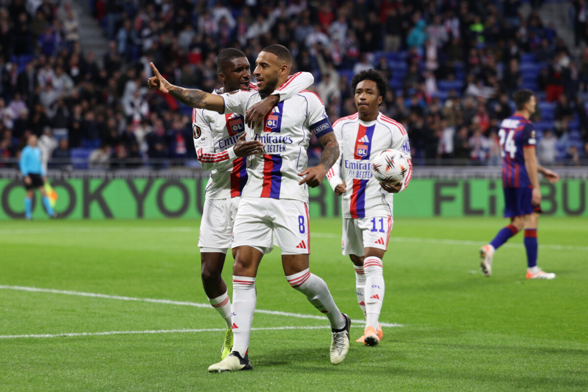 DECINES-CHARPIEU, FRANCE - OCTOBER 23: Corentin Tolisso of Olympique Lyonnais celebrates scoring his team's first goal with teammatesduring the UEFA Europa League 2025/26 League Phase MD3 match between Olympique Lyonnais and FC Basel 1893 at OL Stadium on October 23, 2025 in Decines-Charpieu, France. (Photo by Pauline Figuet - UEFA/UEFA via Getty Images)