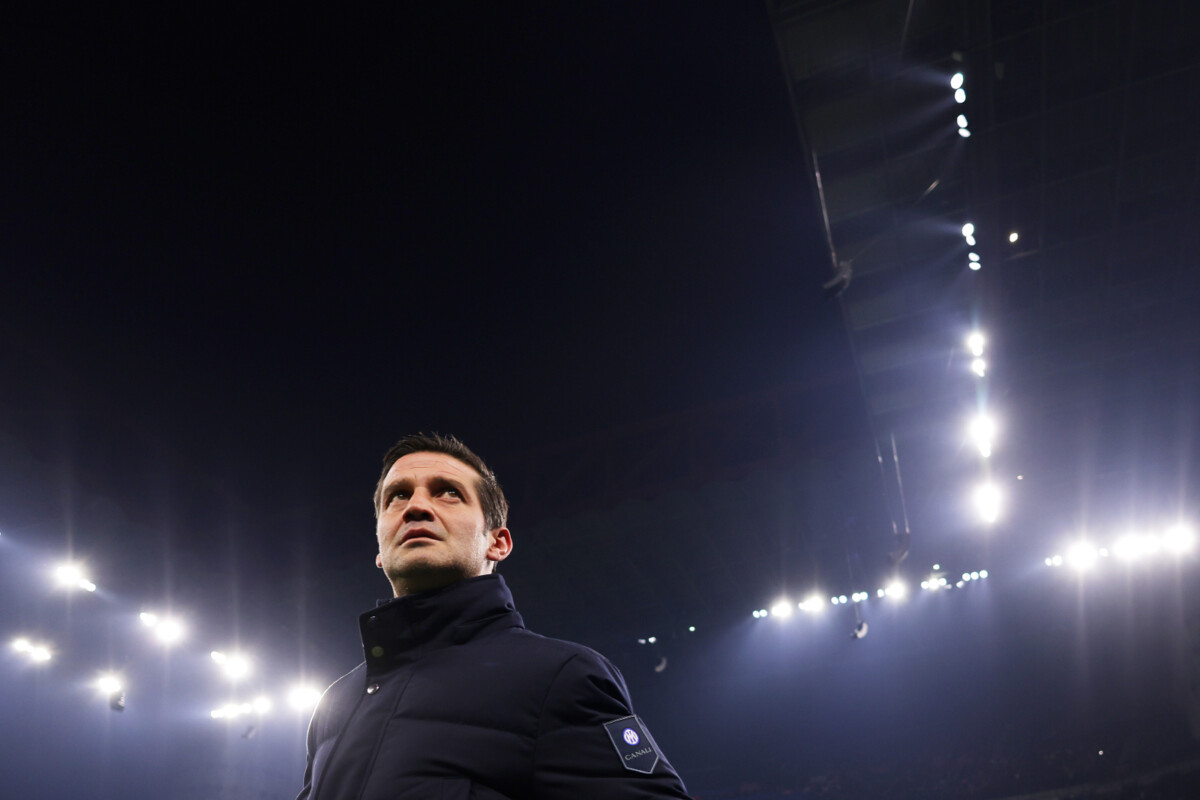MILAN, ITALY - DECEMBER 09: Cristian Chivu, Head Coach of FC Internazionale Milano, looks on prior to the UEFA Champions League 2025/26 League Phase MD6 match between FC Internazionale Milano and Liverpool FC at Stadio San Siro on December 09, 2025 in Milan, Italy. (Photo by Francesco Scaccianoce - UEFA/UEFA via Getty Images)