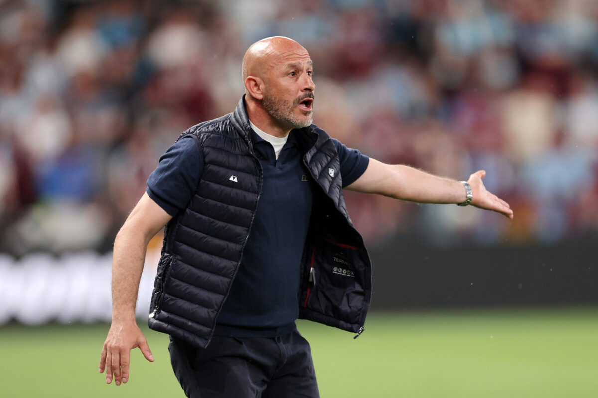 PRAGUE, CZECH REPUBLIC - JUNE 07: Vincenzo Italiano, Head Coach of ACF Fiorentina, gives the team instructions during the UEFA Europa Conference League 2022/23 final match between ACF Fiorentina and West Ham United FC at Eden Arena on June 07, 2023 in Prague, Czech Republic. (Photo by Boris Streubel - UEFA/UEFA via Getty Images)